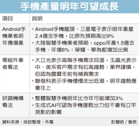 手機(jī)產(chǎn)量明年可望增長(zhǎng)