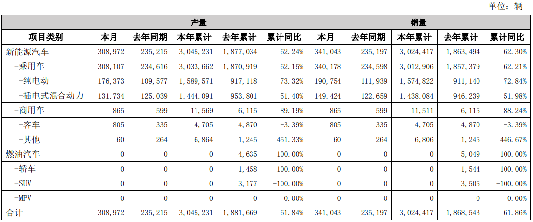 分類型看,乘用車中,純電動汽車12月銷量為190754輛,今年累銷1574822輛,同比增長72.84%;插電式混合動力汽車12月銷量為149424輛,今年累銷1438084輛,同比增長51.98%。