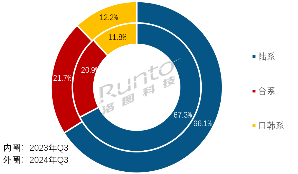 2024年Q3(第三季度) 全球液晶電視面板市場區域結構及變化