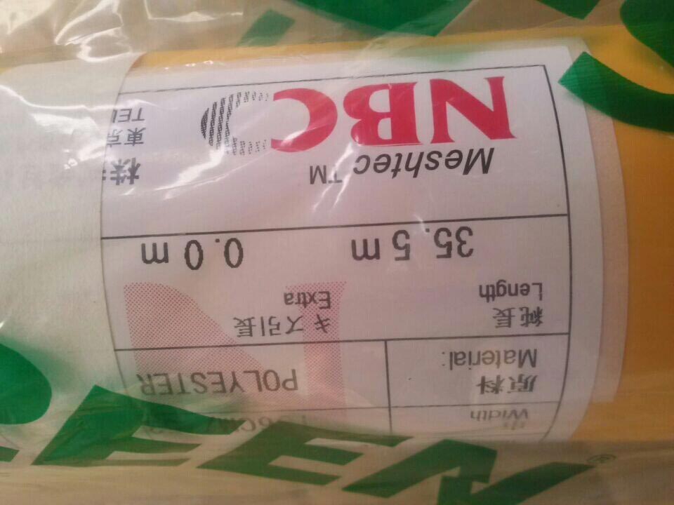 詳細說明:品名:正宗日本NBC網紗 規格:AL-140-30Y-355PW136A(140T,350目,線徑30,寬度尺寸136cm,黃網,長度:整卷30M) 性能:紗薄,手感細膩,**次性張力可拉28N,穩定后張力可達26±1N,由于張力高,網距小,離網性和油墨剝離性出色,不易爆網;能得到高精細、高質量的印刷效果。 用途:主要用于PCB、電子、塑膠、金屬、紙張、紡織品等多種行業,適用對質量效果要求較高的印刷。 本公司專業銷售高品質絲印網紗,印刷網紗,印花網紗,滌綸網紗耗材,主要產品為進口日本NBC網紗、瑞士sefar網紗及各種國產網紗。產品技術參數如下: 絲徑:55微米-27微米。 目數:100T(250目)-165T(420目)。 寬幅:115cm,136cm,158cm, 張力:23N/CM-40N/CM. 材料:聚酯,尼龍。 顏色:白色,黃色。 本公司專業批發,銷售NBC,SEFAR等各種**進口網紗,以及各種印刷耗材,歡迎新老客戶咨詢,蒞臨指導!