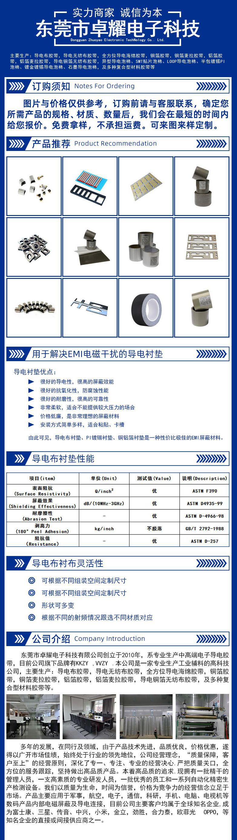 導(dǎo)電泡棉是指在阻燃海綿上包裹導(dǎo)電布,經(jīng)過**系列的處理后,使其具有良好的表面導(dǎo)電性,可以很容易用膠粘帶固定在需屏蔽器件上。 有不同的剖面形狀、安裝方法、UL等**及屏蔽效能的屏蔽材料可供選擇。