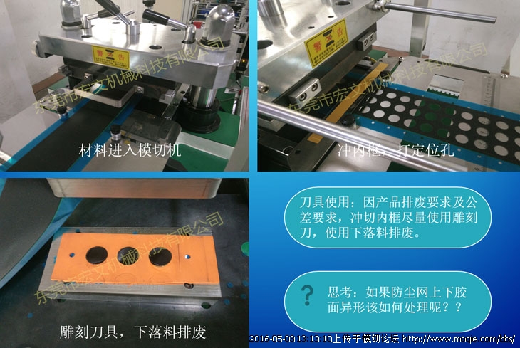 刀具使用:防塵網自動對貼過程中,對刀具并無特殊要求。但是因產品公差要求,及排廢要求建議開具蝕刻刀具或雕刻刀具,必要時可以使用五金模具。